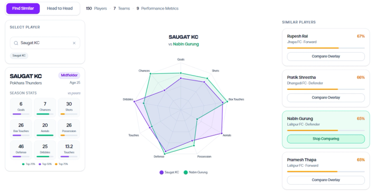 NSL Player Radar is a football analytics tool I built for the Nepal Super League (NSL) .